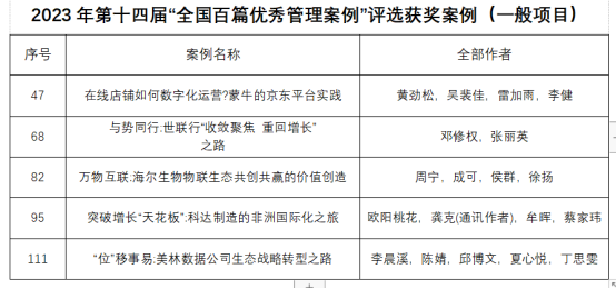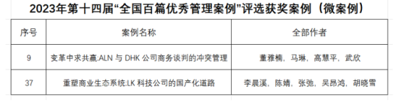 2023年9月8日,在全国工商管理专业学位研究生教育指导委员会的指导下,中国管理案例共享中心主办的第十四届“全国百篇优秀管理案例”评选工作结束。本届评选共收到来自全国170所院校的1283篇投稿,经过同行匿名函审和专家委员会会议评审两轮评审,经管公司共有7篇案例入选“全国百篇优秀管理案例”,其中5篇为一般案例,2篇为微案例。