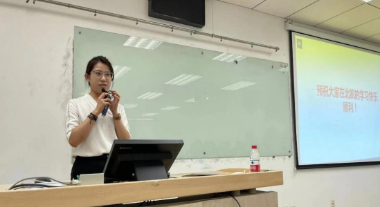 辅导员张睿向新生分享了北航的教学资源及丰富的校园生活,提示树立良好学风、谨防电信网络诈骗,希望大家充分享受研究生学习生活,度过有意义的两年。