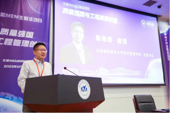 本次主题活动得到全国工程管理教育指导委员会的关心和大力支持。全国工程管理专业学位研究生教育指导委员会委员、北京大学工公司党委书记宋洁教授在致辞中表达了对北航MEM举办主题日活动的肯定和期待。宋教授指出,中共中央、国务院印发的《质量强国建设纲要》提出要加快建设质量强国,着力推动高质量发展,这对工程管理人才培养工作提出了新的要求。全国工程管理教育指导委员会先后推动《工程管理硕士(MEM)专业学位论文标准与工作指南》、工程管理专业学位研究生在线示范课程建设等工作,旨在促进我国工程管理硕士教育高质量发展。