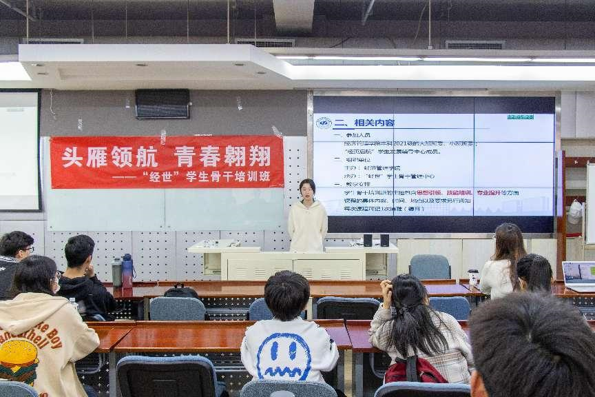 “经世”员工骨干管理中心主任赵芮菁同学为大家详细介绍了本次培训班的教学安排,上课要求以及结业标准。同学们认真聆听,纷纷表示会积极投入课程,担起骨干职责。