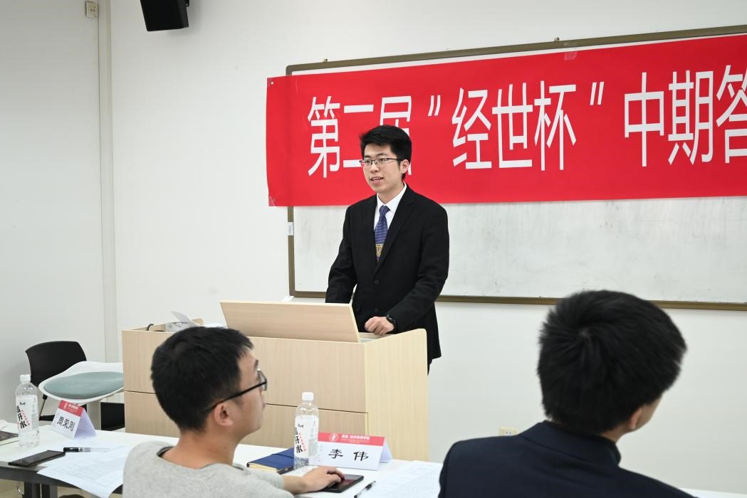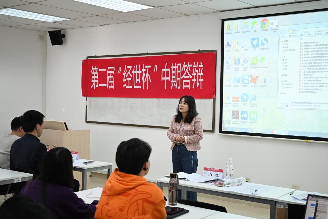 本次答辩会分为员工答辩展示、评委提问和教师指导建议三个部分。同学们就能源经济、绿色金融、企业发展等多个领域开展研究,并展示现阶段研究成果。