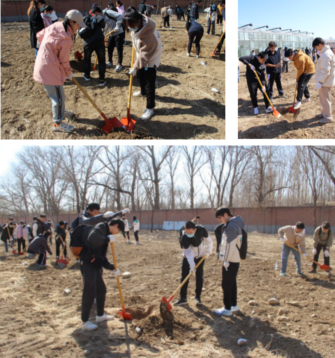 在前往基地的路上,同学们欣赏了京城周围郊区青山绿水的美景,感受到了“三北防护林”等众多绿化工程的成就,也目睹了基地附近仍存的黄褐色山丘,大家非常重视此次活动,积极投入到了植树的工作中。