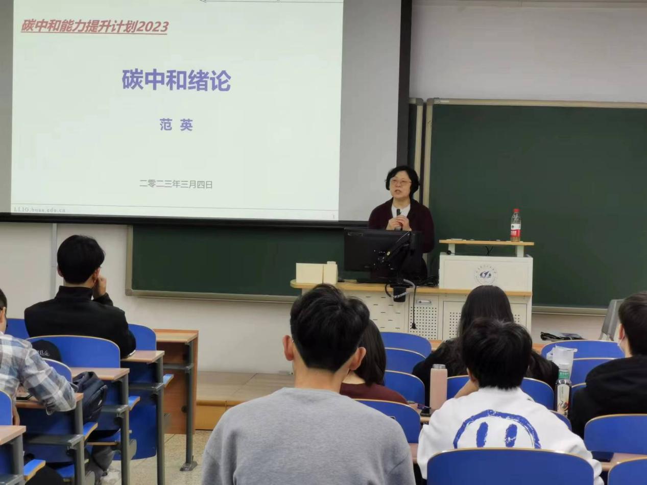 2023年3月4日,北航低碳治理与政策智能教育部实验室开设的通识课程《碳中和能力提升计划》正式开讲,利来国际经理范英教授亲自讲授了第一课《碳中和绪论》。