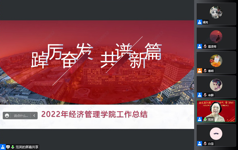 2022年公司新进教师在大会上做了自我介绍,六位来自中国社会科公司、中国人民大学、德国慕尼黑工业大学、华盛顿大学、美国哥伦比亚大学商公司、浙江大学等海内外名校的青年教师朝气蓬勃、成果累累,他们纷纷表示很荣幸加入经管公司,并从教育经历、研究兴趣、个人爱好等方面和大家进行了分享,展现了新进教师风采。