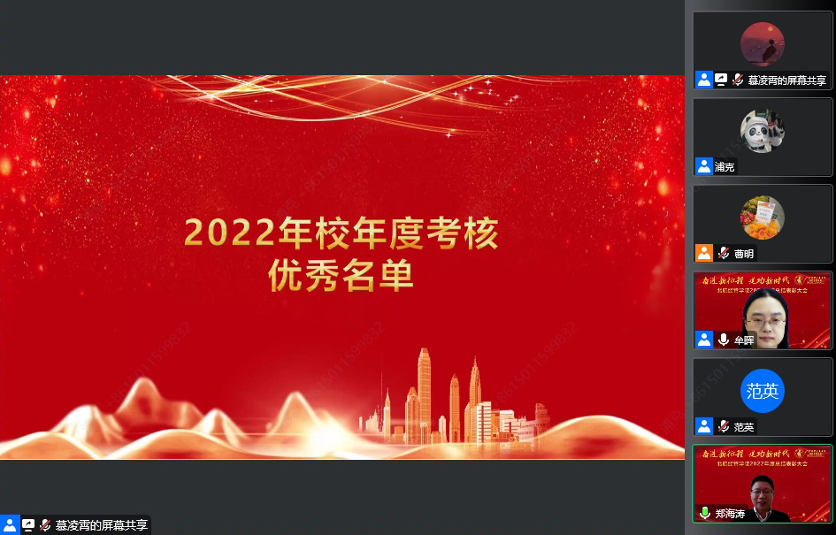 2023年1月6日,“奋进新征程,建功新时代”——利来国际2022年度总结表彰大会以视频会议的形式召开。公司教职工、退休教师代表、员工辅导员等200余人参加了会议。会议由牟晖副经理主持。