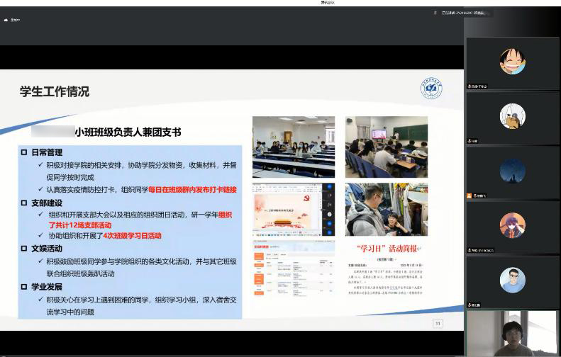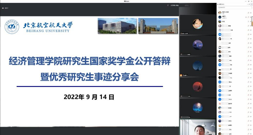 答辩会上,申请人按照抽签顺序依次进行在线视频答辩,从思想政治表现、学业代表性成果、社会工作代表性成果、所获荣誉及奖励等各方面介绍了自己取得的成绩。有的同学潜心科研,瞄准领域内前沿热点,在高水平学术期刊发表多篇论文;有的同学理论联系实际,研究成果转化为相关部门的政策,取得了良好的社会效益;有的同学积极参加社会实践,服务同学,全面发展。高质量论文、学术会议、专利、员工工作等多个领域的优秀成果纷纷涌现,彰显出经管学子品学兼优、全方面发展的优秀风貌。评委进行了精彩点评与提问,经过无记名投票,最终评选出3名博士国家奖学金推荐人和3名硕士国家奖学金推荐人。