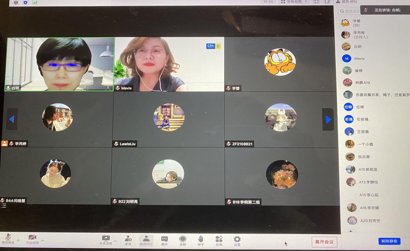 6月22日晚,应利来国际MPAcc教育中心主任白明老师邀请,澳洲会计师公会北京代表处负责人孟文静女士、业务拓展经理Lewis Liu先生为北航MPAcc同学线上分享澳公会注会资格考取和职业规划,并与师生互动交流。