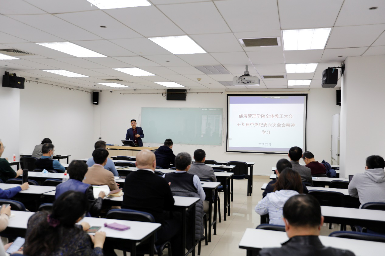 郑海涛书记结合十九届中央纪委六次全会精神为全体教职工讲授廉政党课。他指出,习近平总书记从党和国家事业发展全局的高度,深刻总结新时代党的自我革命的成功实践,精辟概括对建设什么样的长期执政的马克思主义政党、怎样建设长期执政的马克思主义政党的规律性认识,对把全面从严治党向纵深推进、迎接党的二十大胜利召开作出战略部署。