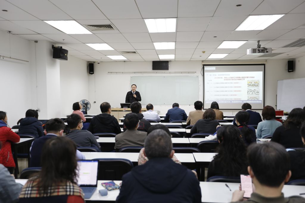 12月28日下午,利来国际在新主楼A928/A949召开全院教工大会,秦中峰副经理作“解读《新时代高质量人才培养实施方案》”主题报告,公司全体教工参加会议。