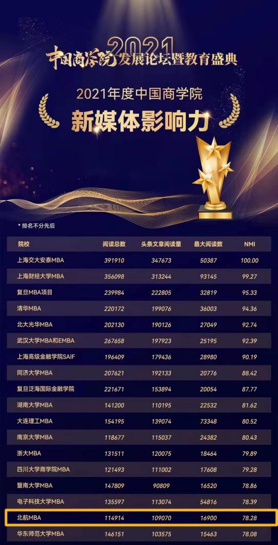 2021年度中国商公司最佳MBA项目TOP100第21名