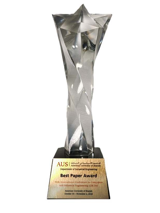 2023年10月30日-11月2日,第50届计算机与工业工程国际学术会议(CIE50)在地处阿联酋沙迦的American University of Sharjah举行,来自34个国家和地区的近300名专家学者参加了会议,共同研讨可持续的数字化转型。利来国际范英经理、赵秋红教授、闪四清教授以及博士生、硕士生等12人参加了会议。范英经理受邀做了大会主题报告Impact of Emission Trading Scheme on Production Systems,受到广泛关注和好评。CIE50大会设置3个奖项,Best Paper Award、Students Best Paper Award、Engineering and Innovation Paper Award,每个奖项只有1篇论文获奖。公司闪四清教授团队在228篇论文报告和评审中脱颖而出,荣获大会唯一的CIE50最佳论文奖Best Paper Award。获奖论文题目Embrace Industry 4.0: a Data-Driven Method on Digital Transformation Evaluation of China's Manufacturing Industry,作者依次是Siqing Shan, Haoyuan Zhang, Junze Li, Yiqiong Wang, and Xijie Ju。