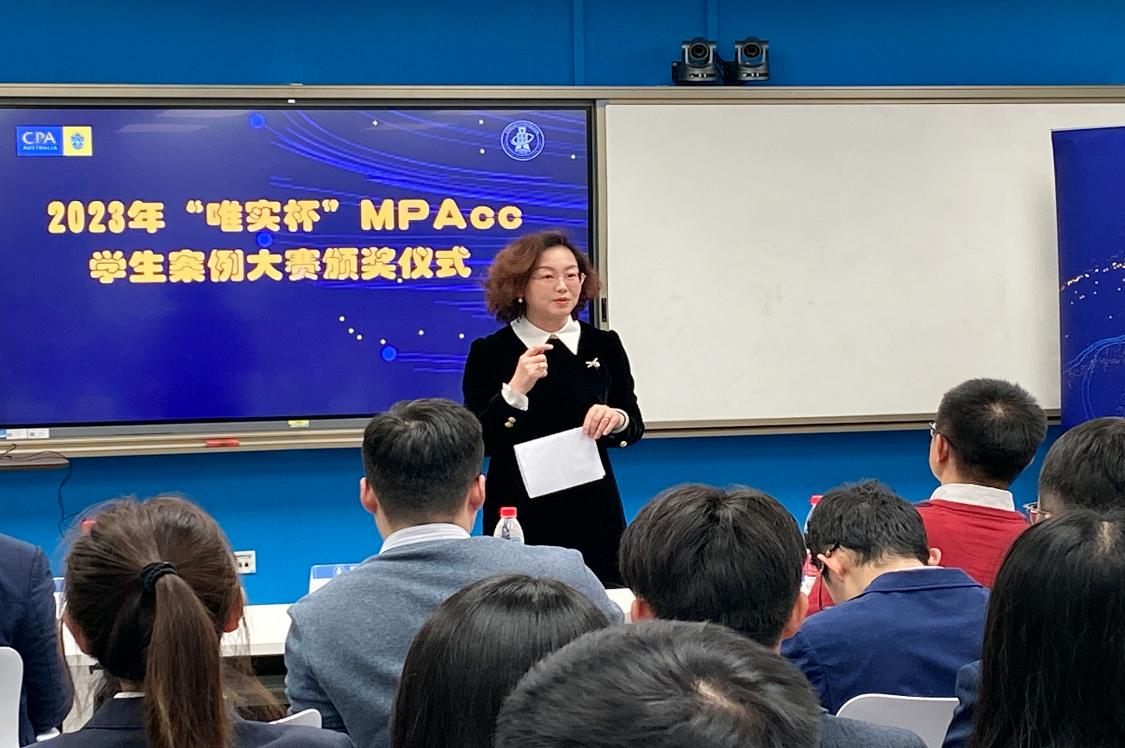 大赛的赞助方——澳洲注册会计师公会北京代表处首席代表孟文静老师回顾了双方在2022年疫情期间首次合作举办“唯实杯”MPAcc员工案例大赛的情况,表达了支持北航MPAcc员工发展、共同推动国内会计领域人才加快与国际接轨的初衷与愿望,希望通过澳公会平台,为同学们提供更多实践与职业发展机会,为有志报考澳洲注册会计师的同学提供指导与帮助。
