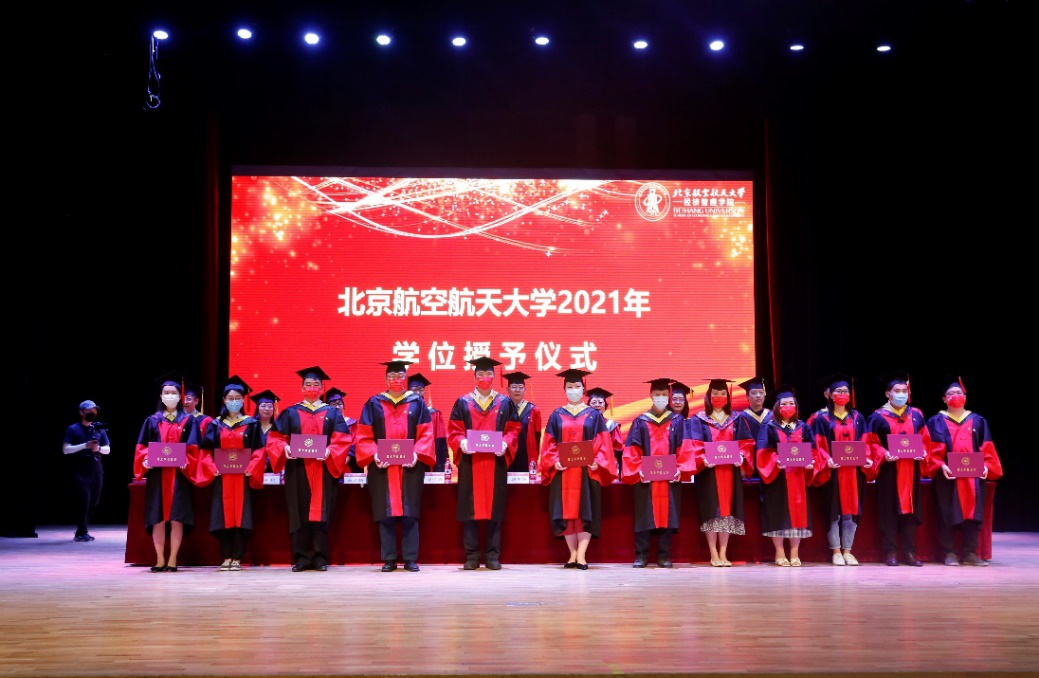 2021年毕业研究生任涛、董伟同学和2020年毕业研究生马亚男同学分别作为毕业生代表发言。任涛同学回顾了自己入读博士研究生后的心路历程和对自己职业道路的思路,分享了自己考取选调生的经历,表达了自己勇担时代使命,做时代弄潮儿的决心与抱负。董伟同学回顾了三年间敬爱的师长给予的精神食粮,身边的同学给予的诚挚友情,以及对学习、工作、生活的高效安排和不懈追求,和克服困难后收获的成长。他呼吁毕业生只争朝夕,不负韶华,挂云帆乘风破浪、怀梦想昂首起航。马亚男同学回忆了自己考取北航经管公司研究生的经历和在校期间的学习经历,感谢母校赋予的克服自卑,追求卓越的机会,表达了对母校的怀恋与热爱。