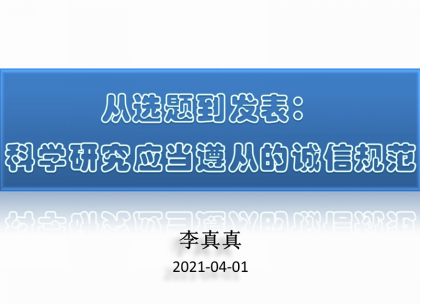 为进一步加强公司研究生学术诚信建设,严肃学术纪律,营造良好的学术环境,2021年4月1日晚,公司邀请中科院战略咨询研究院李真真研究员为MEM研究生开展学术诚信专场讲座,讲座题目为《从选题到发表:科学研究应当遵从的诚信规范》。此次讲座由公司经理范英教授主持。今后,此类讲座将作为公司研究生的必听讲座之一,涵盖所有的公司研究生。