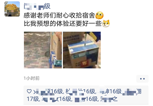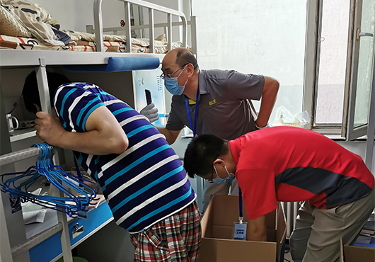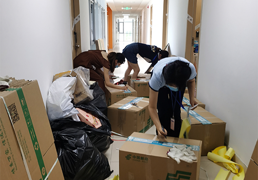 精准施策,贴心周到。为确保打包运送无误,各工作组及时征集员工的打包意愿,协商好打包时间,做到点对点沟通。在打包过程中,全程与员工进行视频连线,耐心细致与同学沟通,每一个角落、每一件物品都不错过。大到被子、床头柜、电脑,小到衣架、计算器、签字笔,从书架上的书籍到床下的鞋袜,只要员工们需要,无论物品大小,都耐心寻找,细心挑拣,保证所有物品细心整理、精心打包。对于重要证件和文件、易碎物品和贵重物品都进行妥善处理,充分尊重员工的个人意愿。