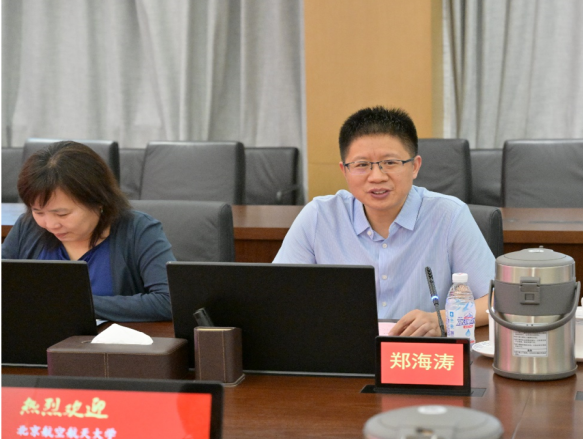 在成飞公司,郑海涛书记一行受到了航空工业成飞总经理、党委副书记蒋敏、党委副书记刘可为、航空工业成飞北航员工代表和相关负责人的热烈欢迎。航空工业成飞总经理、党委副书记蒋敏致欢迎辞。航空工业成飞代表首先介绍了航空工业成飞的公司基本情况、校企合作情况、党建情况。