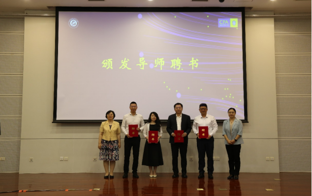 范英经理与牟晖副经理共同为2024年四位新聘校外导师颁发了聘书,他们是用友网络科技股份有限公司副总裁董波、中海油华北销售有限公司财务总监李风平、常见投资管理(北京)有限公司副总经廉涛以及北京财帮科技管理有限公司创始人兼CEO王峰。