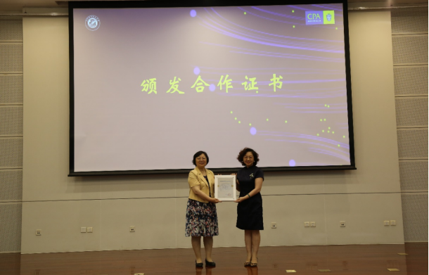 范英经理向澳洲会计师公会北京代表处首席代表孟文静老师颁发了合作证书,标志着双方合作的进一步加深。孟文静老师在致辞中分享了她对于会计行业数字化转型趋势的深刻见解,以及她对未来双方合作在培养数智化会计人才、推动行业创新与发展方面的期待。