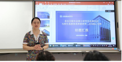 接着,各项目负责人就项目研究进展进行了详细汇报。MBA中心梁娜老师以MBA为例对非全日制专业硕士研究生招生选拔体系进行探究,提出“三筛一选”制度。学工办衣萌老师强调了美育中音乐教育在员工心理健康方面的重要性与实践探索。党政办朱凯慧老师在党建方面探索支部组织生活评价体系,以基层党支部为抓手,推动创新人才培养、基础研究、重大课题突破。案例中心李莎老师团队对公司官网的在线案例库建设成果进行展示,以求为公司师生提供丰富实用的案例资源、搭建高效便利的案例共享平台。公司资料室石岚老师汇报了资料室服务模式的拓展创新研究,将资料室的服务做到深层次、系统性。MPAcc中心许光明老师就数智化时代下高校会计专业课程转型的发展趋势与前景预测进行了汇报。