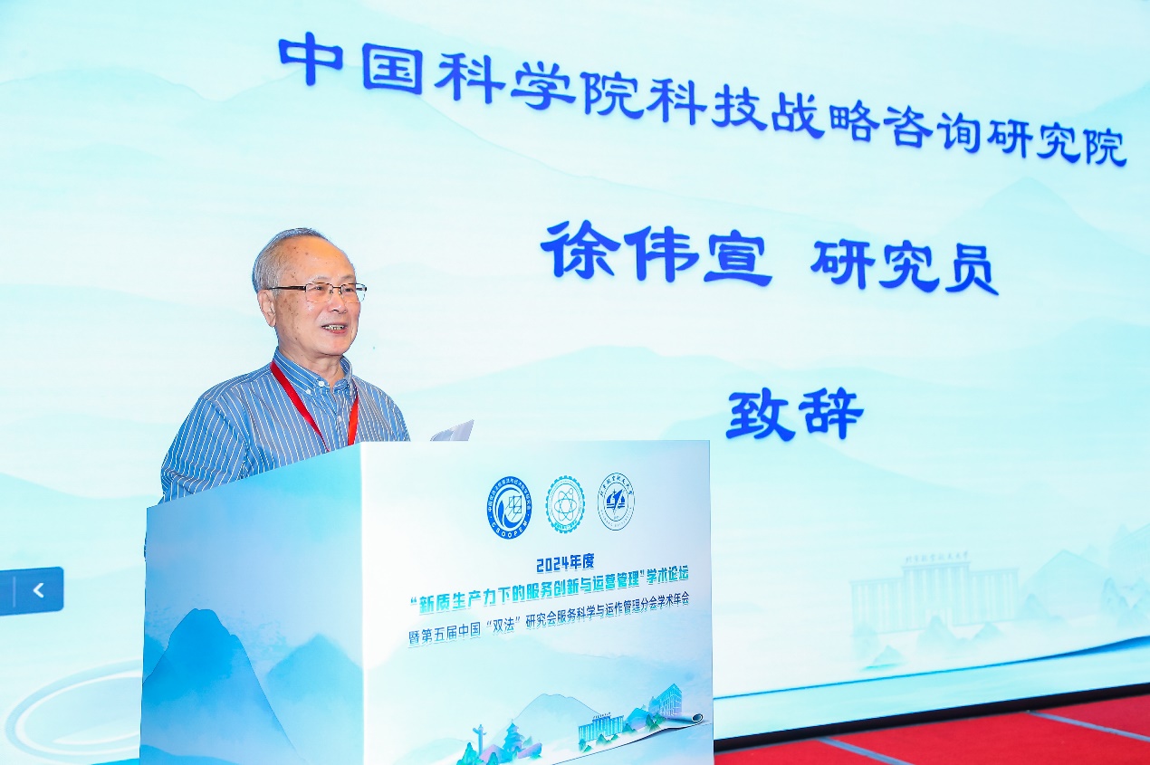 徐伟宣研究员向参与本次分会学术年会的嘉宾和学者表示热烈的欢迎,并指出在过去几年,服务科学与运作管理分会取得了一系列重要成就,有力支持了“双法”研究总会工作的开展。今年年会的主题“新质生产力下的服务创新与运营管理”,是我们应对当下应对数字化和智能化浪潮的重要课题。他强调,我们要团结本领域的研究人员,在发展“新质生产力”的大背景下,推动学科的发展迈上新的台阶,为世界提供中国智慧。