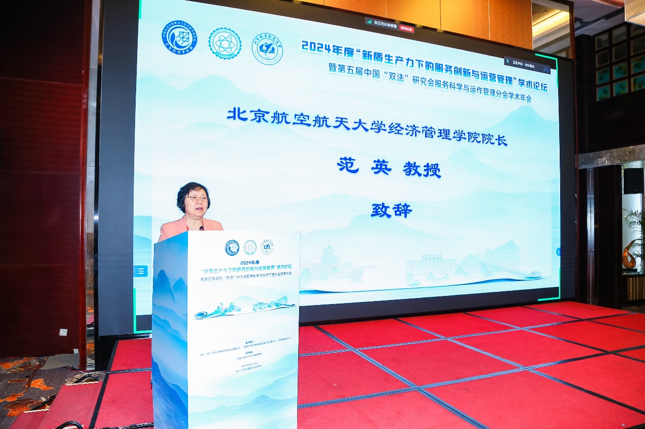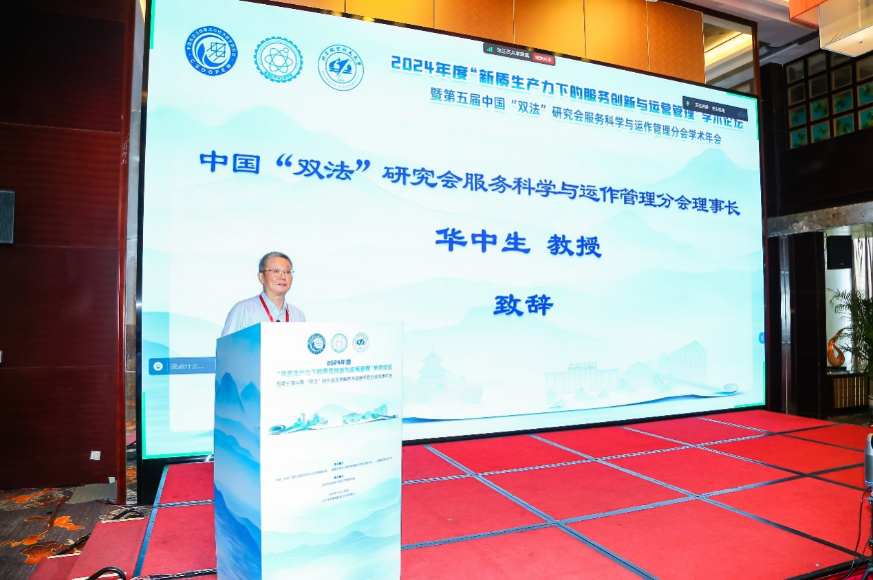 华中生教授代表中国“双法”研究会服务科学与运作管理分会,向出席会议的嘉宾、学者以及所有工作人员,致以诚挚的感谢。华教授指出,本次大会主题“新质生产力下的服务创新与运营管理”契合了当前经济社会发展的重大需求和学术界的研究热点;在该主题下,我们将聚焦服务产业的创新发展,探讨如何通过智能技术、数据驱动等手段,提升服务业的竞争力和可持续发展能力,理解“新质生产力”所带来的新机会和新挑战,积极探索服务科学与运营管理的创新路径。