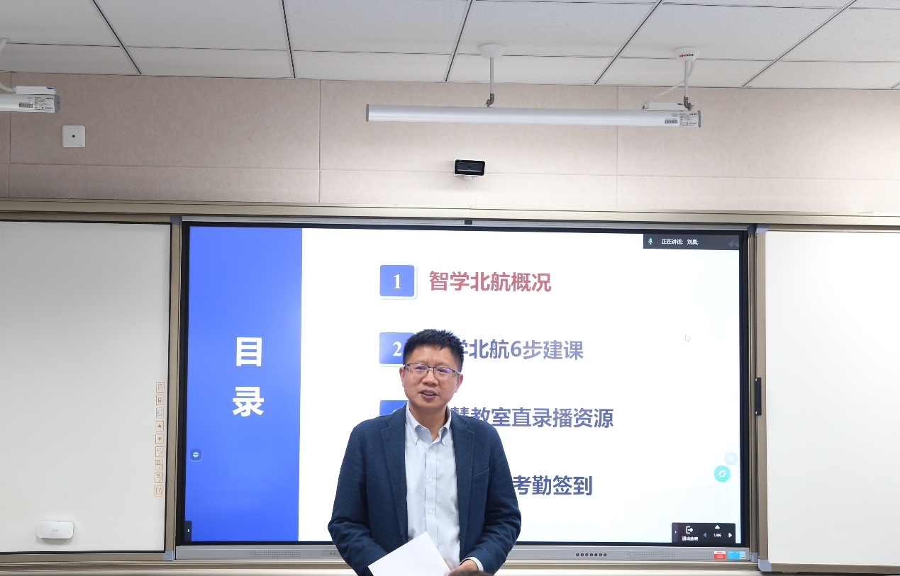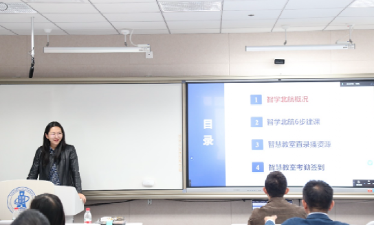 教务部唐玲老师详细介绍了“智学北航”的功能模块、操作流程以及常见问题解决方法。从智学北航概况、智学北航6步建课、智慧教室直录播资源、智慧教室考勤签到四个方面,逐一进行了深入浅出的讲解,使参会教师对平台的使用有了更加直观和全面的认识。