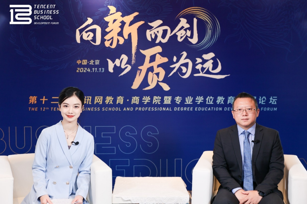 2024年11月13日,由腾讯新闻主办的第十二届腾讯网教育·商公司暨专业学位教育发展论坛于北京成功举办。来自全国100余所高校商公司经理、副经理、项目主任、行业专家、企业领袖以及三百余名院校代表出席会议。本届论坛以“向新而创·以质为远”为题,积极响应时代大潮,紧贴国家发展战略,以专业视角、前瞻思维,深度剖析商科教育在新时代的发展趋势,旨在进一步推动中国商科教育更好更快地向前发展,更为全球商科教育事业添砖加瓦、开拓道路。