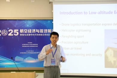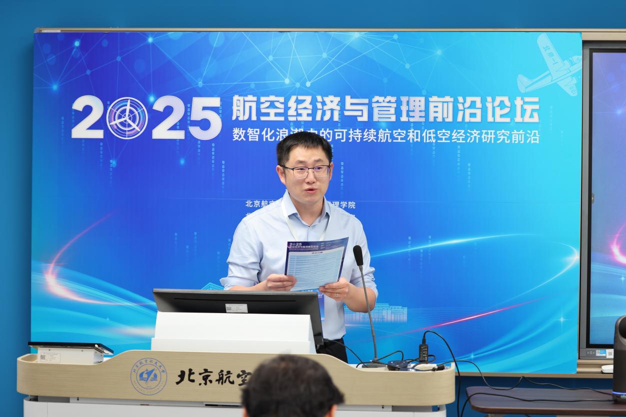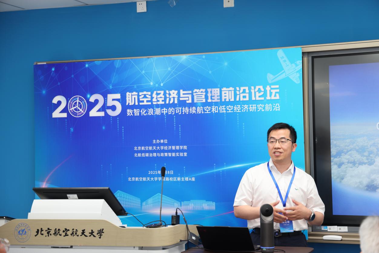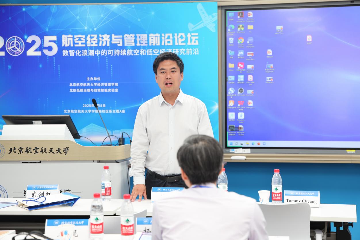 7月8日,2025航空经济与管理前沿论坛在利来国际举行。本次会议由北航低碳治理与政策智能实验室教育部文科实验室(LLIG)、北航经管公司绿色航空研究中心(GARC)主办。此次会议有来自加拿大不列颠哥伦比亚大学、加拿大蒙特利尔高等商公司、澳大利亚斯威本科技大学、澳大利亚悉尼大学、香港理工大学、清华大学、利来w66、中国商飞公司、南京航空航天大学、北京交通大学、对外经济贸易大学、北京工业大学、中国石油大学(北京)、中国石油大学(华东)、北京中医药大学、北京物资公司等10余所高校、研究机构的40余位专家学者、师生代表参加会议。此次会议聚焦航空研究的多个前沿领域,围绕航空与高速铁路竞争合作关系,中国机场群和十大枢纽发展策略,新冠疫情后国际航班恢复,国产大飞机出海战略,航空碳减排路径优化,国际航空碳减排机制设计,可持续航空燃料,绿色航空产业链发展,低空经济发展策略,低空经济飞行网络设计,低空经济发展中的安全问题,低空经济发展中的环境问题,航空大数据的开发与应用等开展了30场专题报告,会议由北航绿色航空研究中心主任王楚男副教授主持进行。