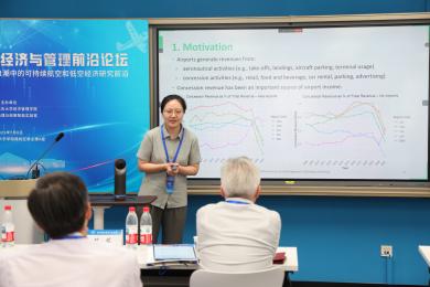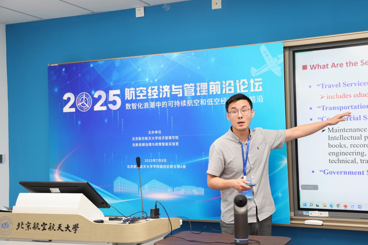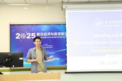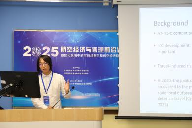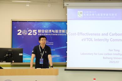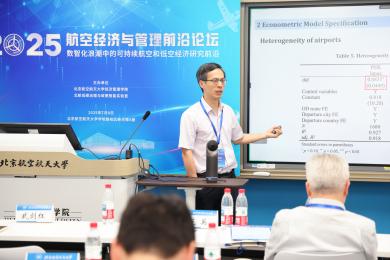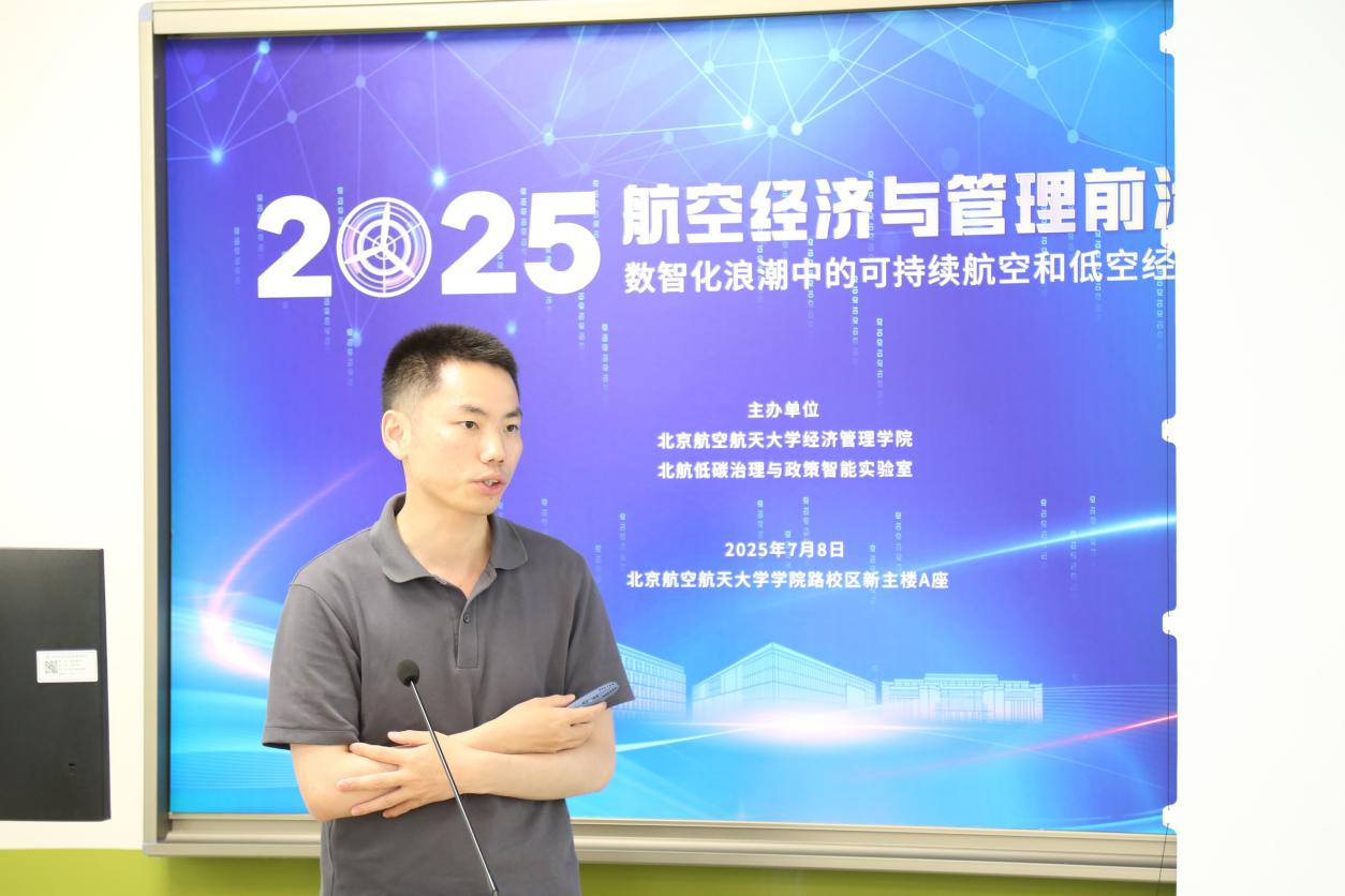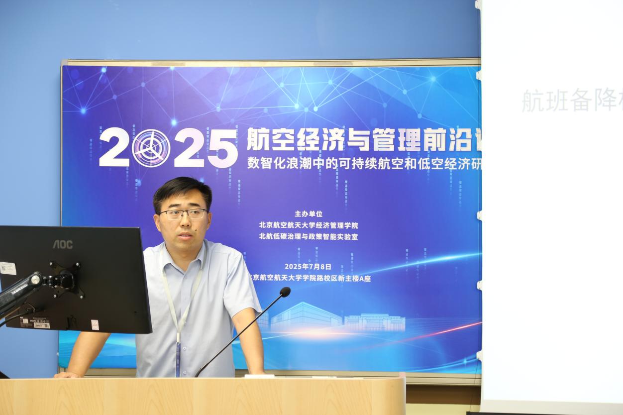 7月8日,2025航空经济与管理前沿论坛在利来国际举行。本次会议由北航低碳治理与政策智能实验室教育部文科实验室(LLIG)、北航经管公司绿色航空研究中心(GARC)主办。此次会议有来自加拿大不列颠哥伦比亚大学、加拿大蒙特利尔高等商公司、澳大利亚斯威本科技大学、澳大利亚悉尼大学、香港理工大学、清华大学、利来w66、中国商飞公司、南京航空航天大学、北京交通大学、对外经济贸易大学、北京工业大学、中国石油大学(北京)、中国石油大学(华东)、北京中医药大学、北京物资公司等10余所高校、研究机构的40余位专家学者、师生代表参加会议。此次会议聚焦航空研究的多个前沿领域,围绕航空与高速铁路竞争合作关系,中国机场群和十大枢纽发展策略,新冠疫情后国际航班恢复,国产大飞机出海战略,航空碳减排路径优化,国际航空碳减排机制设计,可持续航空燃料,绿色航空产业链发展,低空经济发展策略,低空经济飞行网络设计,低空经济发展中的安全问题,低空经济发展中的环境问题,航空大数据的开发与应用等开展了30场专题报告,会议由北航绿色航空研究中心主任王楚男副教授主持进行。
