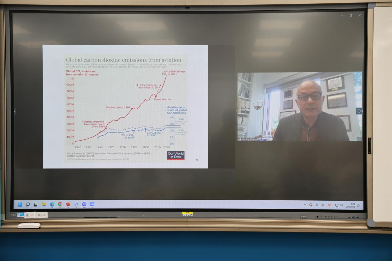 加拿大不列颠哥伦比亚大学尚德商公司、世界航空学会(ATRS)主席张安民讲席教授作关于碳税与可持续航空燃料补贴的经济与气候影响的线上主旨报告,并与与会学者充分交流讨论。