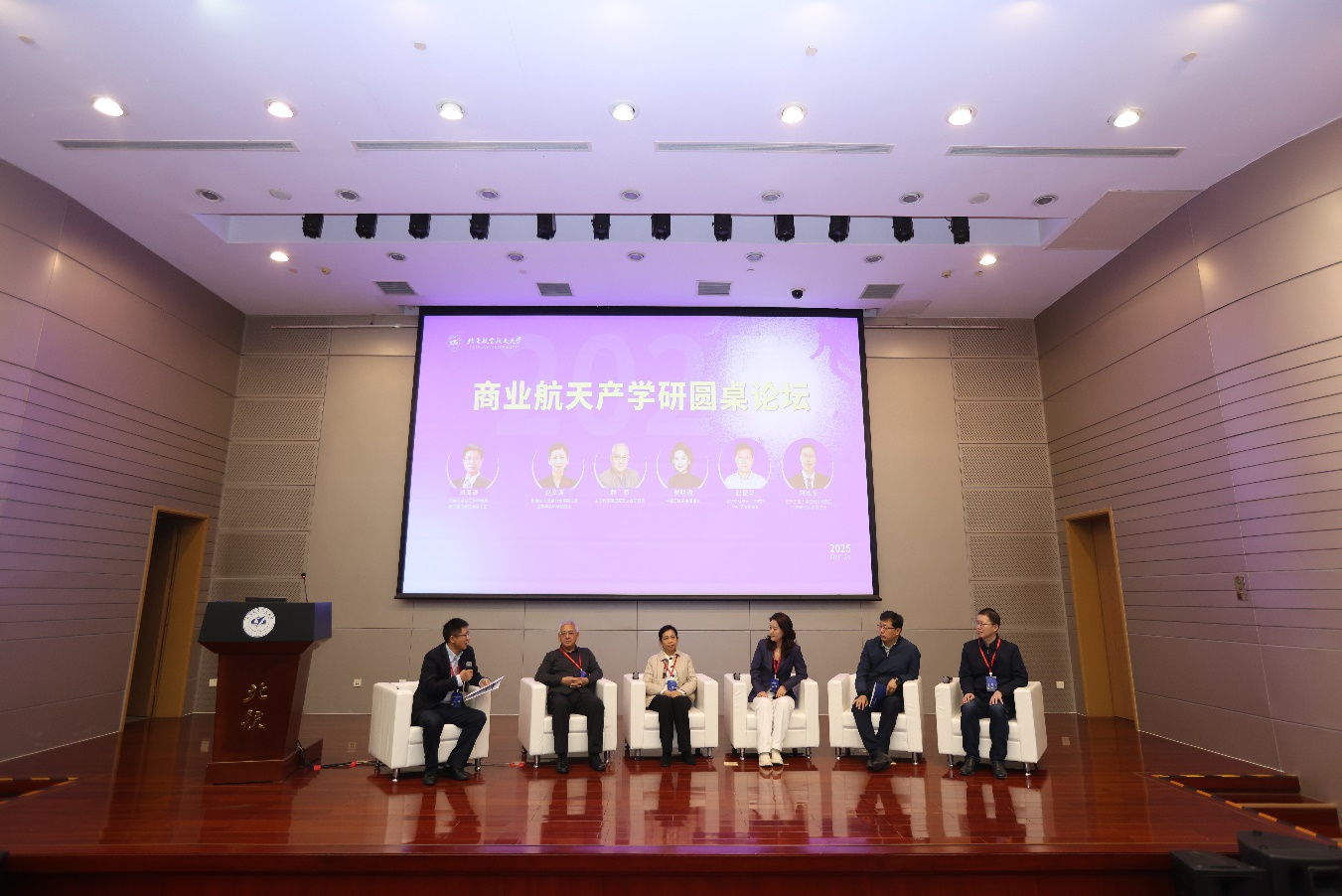 商业航天产学研圆桌论坛,由北航经济管理公司党委书记郑海涛教授主持,对话国家航天局高分专项副总师、国际宇航科公司赵文波院士,中国科公司国家天文台赵有研究员,中商汇投基金董事长窦明明,北航宇航公司副经理张振华教授,航天工程大学空间目标感知全国重点实验室办公室刘德生主任。论坛聚焦商业航天发展过程中产学研融合面临的机遇与挑战,通过观点分享、思想碰撞,为商业航天安全有序发展和产学研深度融合进行了深入的讨论。