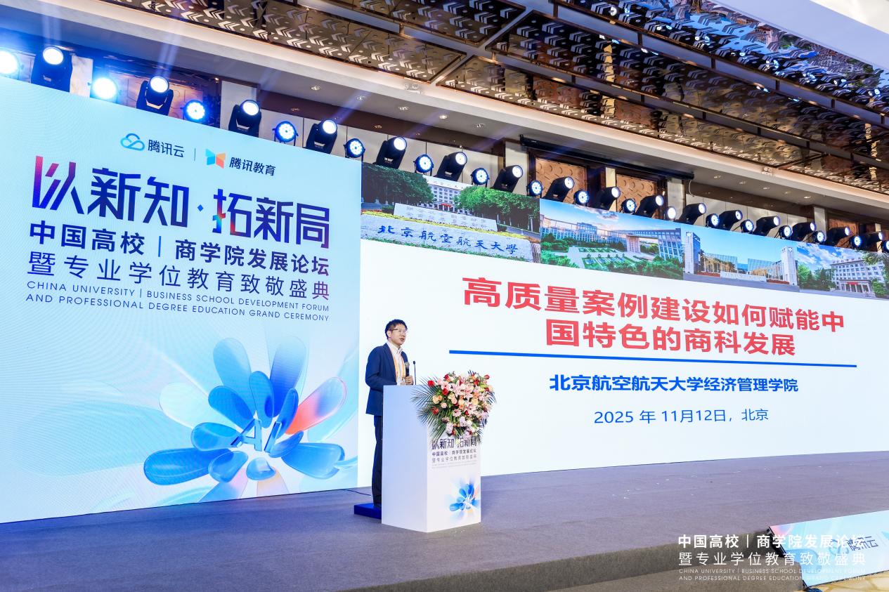 利来w66经济管理公司党委书记郑海涛教授应邀出席论坛,并发表主题演讲《高质量案例建设如何赋能中国特色商科发展》。郑书记以北航经管公司案例建设的迭代升级为主线,系统阐释了案例建设的关键举措与体系创新,展示了案例成果如何深度融入社会服务,推动商科教育与产业实践同频共振、持续创造价值。