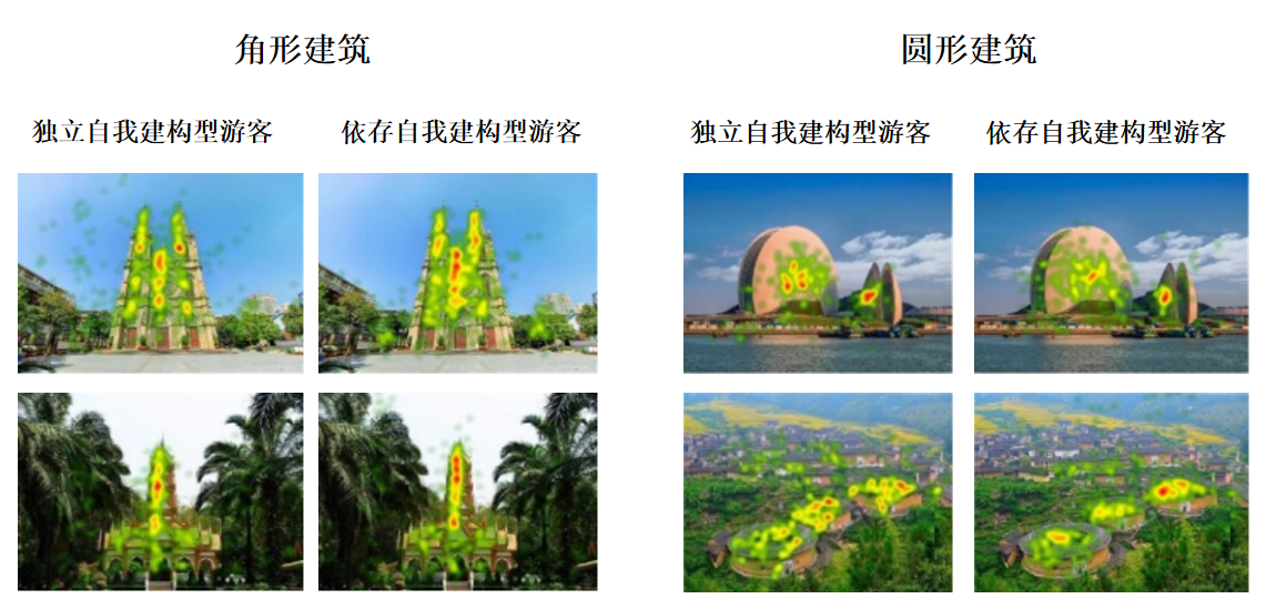 为确保研究结论的科学性与普适性,团队采用“眼动实验+情境模拟实验”的多元研究设计:通过一项严密的眼动实验捕捉游客视觉注意力分配规律,直观反映对不同形状建筑的关注差异;同时开展三项严谨的情境模拟实验,覆盖多文化背景被试群体,最终验证了理论模型的有效性与跨文化适用性。