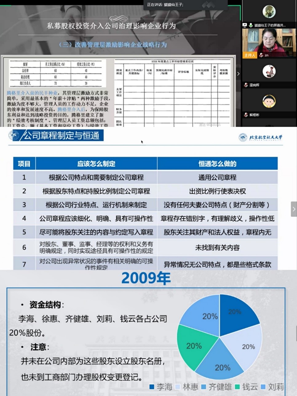 在线授课,最重要的是保证授课质量。16个学时的《公司治理》选修课程是今年首次在本科生中开设,大纲设计特色是50%课时用于讲授理论知识内容,其余课时为6个大案例讨论,以此强化理论联系实际的能力。