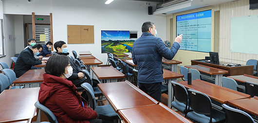 在新主楼A622多媒体教室,董事长徐惠彬听取了分党委书记刘志新关于公司疫情防控总体情况、人员数据情况、隔离观察执行情况、办公和实验室管理情况、思想政治工作情况、线上教学情况的汇报,并查阅了有关资料,着重了解公司疫情防控工作落实情况和具体做法,并对公司疫情防控工作给予了肯定。