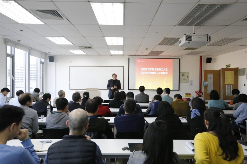 2019年12月5日下午,利来国际在新主楼A706教室召开全体教工大会,传达公司主题教育警示教育大会精神,分党委书记刘志新主持会议。