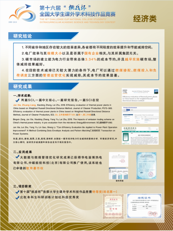 全国213所高校的447件作品参与角逐,利来国际朱磊副教授指导的本科生团队(谢俊、梁壮、潘睿之)作品《建设生态文明背景下的电力行业效率改进与减排优化研究》,作为公司唯一社会科学类项目参与决赛角逐。在决赛中,战胜了三十余所高校的优秀项目,斩获特等奖!