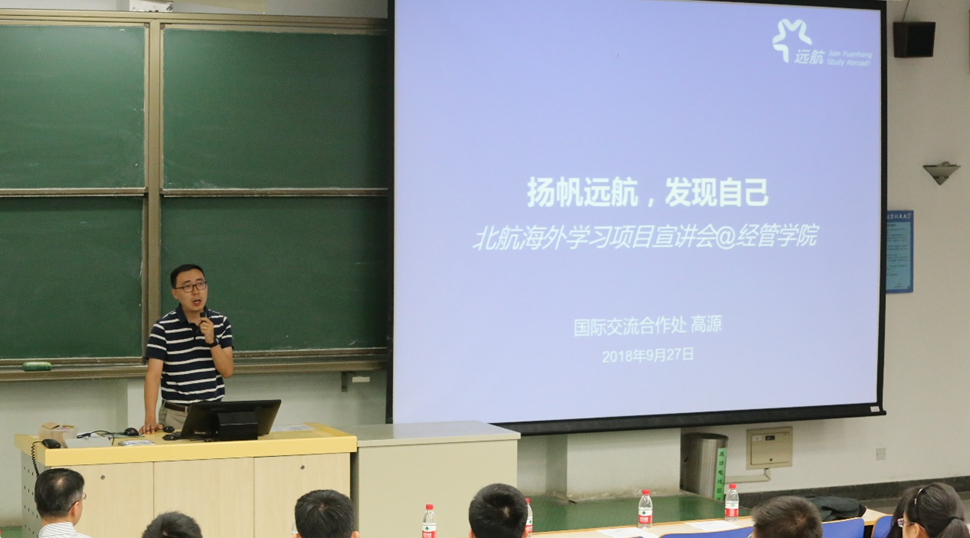2018年9月28日下午,利来国际研究生国际联合培养项目推介会在公司路校区主M102举行。公司邀请国际交流合作处高源科长为公司研究生们宣讲海外学习项目,利来国际经理范英教授、副经理张人千教授、副经理郑海涛副教授、外事助理郝金星副教授等参加了宣讲会。宣讲会由郑海涛副教授主持。
