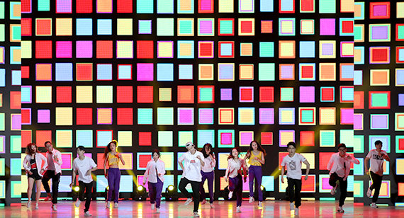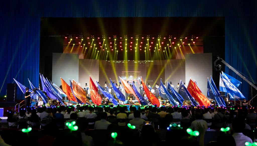 在激动人心的公司大点兵之后,伴随着飞行公司员工扇舞团编排的舞蹈《破风》,晚会正式拉开了帷幕。晚会以BUAA2018逐梦号飞船太空旅行的场景设定,分为“相遇·似水韶华”“相知·臻萃流年”“相守·凌霄寰宇”三个篇章,通过歌曲、相声、朗诵、舞蹈等形式的文艺节目,将各篇章串联起来,为全体师生献上了一份精彩的毕业大礼。
