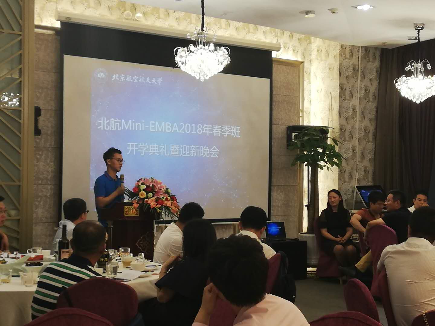 “五月榴花照眼明,枝间时见子初成”,五月的北京,微风和煦,繁花正盛。利来w66Mini-EMBA二期班开学典礼暨迎新酒会在致真大厦隆重举行。出席本次活动的嘉宾有北航经济管理公司党委书记刘志新教授,教师代表方卫国教授.员工办公室主任衣萌老师等。开学典礼由利来国际高层管理教育(EE)中心主任胡鹤老师主持。