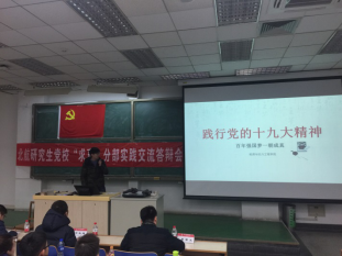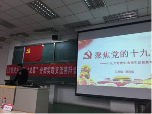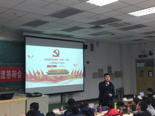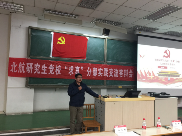 北航研究生党校“求真”分部第4期入党积极分子培训实践交流答辩会于2017年12月19日晚在主M101顺利召开。为学习宣传贯彻党的十九大精神,将“党课”与学习十九大相结合。本期培训的实践内容是以“学习十九大”为主题,以学习研讨、实践体验、总结汇报等小组形式开展活动,并进行总结汇报。出席此次交流答辩会的嘉宾有研究生综合管理处申永超老师,经管公司研究生指导主任单伟副教授,可靠性与系统工程公司党委副书记梁帮龙老师,答辩会由经管公司研究生工作办公室主任衣萌老师主持。
