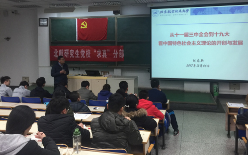在积极分子们热烈的掌声中,刘书记开始了他今天的党课。本次党课的主题是从十一届三中全会到十九大看中国特色社会主义理论的开创与发展。刘书记将从十一届三中全会到十九大以来的中国特色社会主义理论分为三个时期:一是理论的开创时期,即邓小平时代;二是理论的发展时期,即江泽民、胡锦涛时代;三是理论发展的新时期,即习近平时代。每一个时期,刘书记都用讲故事举例子的方式,让积极分子们更直接更深入的了解中国特色社会主义理论。