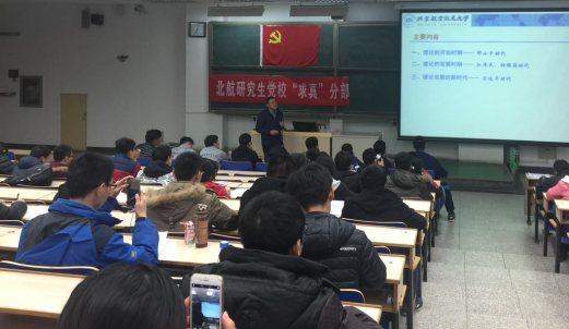 2017年12月6日晚6点30分,北航研究生党校“求真”分部第四期入党积极分子培训的第一次党课在主M101教室顺利进行,来自12个不同公司的196名入党积极分子参加了本次党课的学习。此次党课的主讲嘉宾为经管公司党委书记刘志新教授,由经管公司研究生指导主任单伟副教授主持。
