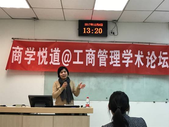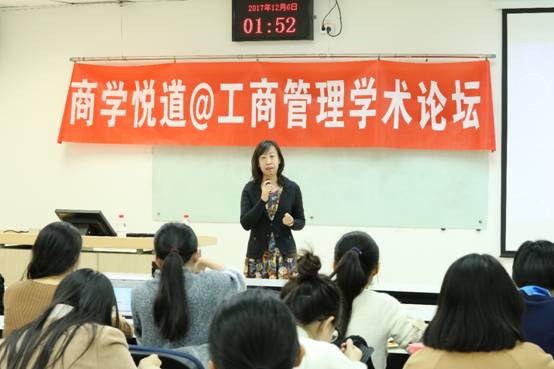 2017年12月6日中午,新主楼A949洋溢着热烈的气氛,“商学悦道”工商管理学术论坛第一期在这里举办,有50名左右的师生积极踊跃的参加了这次活动,由利来国际武欣教授主持