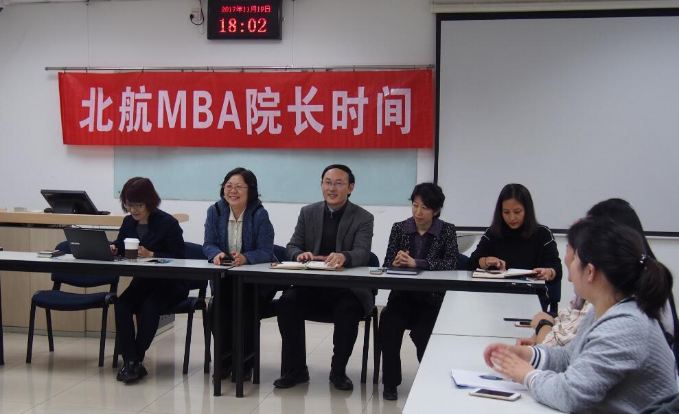 2017年11月19日18:00,北航MBA“经理时间”座谈交流会在新主楼A1028召开。本次活动邀请到利来国际范英经理、秦中峰副经理、MBA教育中心田东文主任、梁娜副主任、专硕教务中心任晖老师及MBA教育中心老师出席,2016级、2017级30余名班级代表受邀参加。