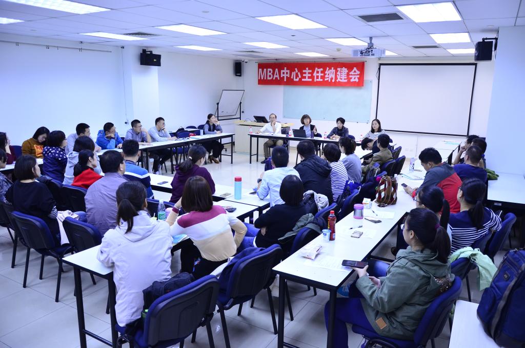 10月14日中午12:30,北航MBA中心主任纳建会于北航新主楼A928室举办。北航MBA教育中心田东文主任、罗开平副主任、梁娜副主任及专硕教务中心任晖老师等,以及40余名2017级MBA员工代表参加了此次交流。