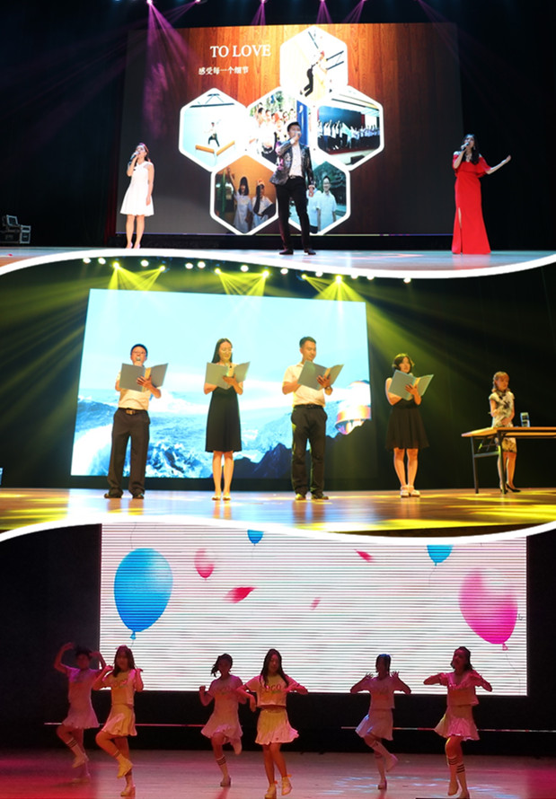 晚会尾声,主持人邀请在场的所有老师上台,同学们为老师献上鲜花,祝各位老师教师节快乐,感谢老师们辛勤劳动与无私付出。伴随着悠扬的音乐,各位演员与老师们同台合影,本次晚会在温馨浪漫、欢快惬意中圆满落幕。