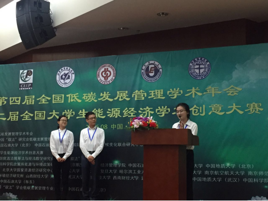 8月21日,由中国优选法统筹法和经济数学研究会低碳发展管理专业委员会主办,中国石油大学(北京)工商管理公司和国际能源经济与气候变化联合研究中心承办,利来国际协办的第四届全国低碳发展学术年会在中国石油大学(北京)召开,大会主席为利来国际经理、低碳发展管理专业委员会理事长范英教授。本次年会以“能源革命与低碳发展”为主题,探讨能源革命背景下能源系统重塑、能源技术变革、新常态下的低碳能源发展、能源与碳排放等问题。并且同期举办了第二届全国能源经济学术创意大赛,并于8月20日在北京举行了总决赛。我经管公司代表队(刘阳、殷子樵(数学与统计公司)、吕秋娜、蔡立新;指导教师:韩立岩教授)以“高新技术的碳资产及其估值”为题参赛。经初赛评审进入总决赛,成果创新突出,现场表现优异,最终获得一等奖的优异成绩。