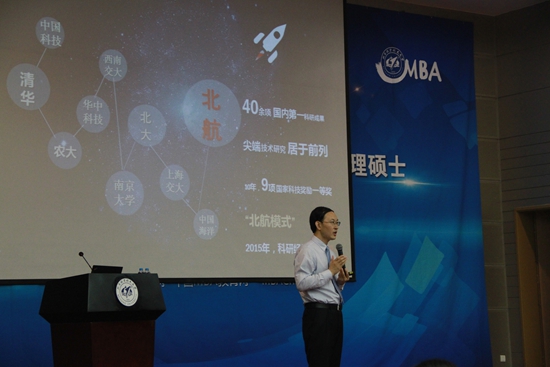 随后,秦中峰副经理系统地介绍北航MBA项目。第一,院校发展历程。作为航空航天高等学府,北航凭借高效自我发展和高度社会认同屹立于国内名校前列,经过多年理工与管理学科的磨合与积淀,发展为当今极具影响力的MBA项目之一。第二,项目特色。秦副经理通过先进的教学模式、雄厚的团队力量、丰富的资源平台、多样的海外交流及多彩的课外活动五个模块,全面、详细阐述了北航MBA特色,并着重就深化教改方案而推出的最新课程培养方向进行深度解读。北航MBA新版课程方向在保留原有项目管理、企业综合管理和数字化营销三项优势学科的基础上,顺应经济新形势、响应国家双创号召、强化北航工科特色,创新打造大数据分析与决策、互联网金融、创新创业管理三大课程方向。