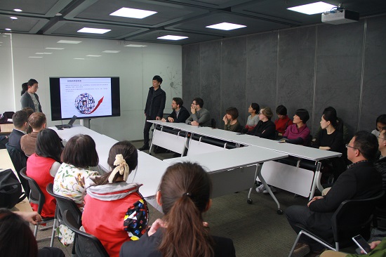走进致真大厦21层,同学们就被走廊里一整排的动态演示墙所吸引。在演示墙前,来自市场部的员工用活泼而流畅的英文,为同学们介绍慧科教育集团的发展历程。结合着动画与讲解,同学们的理解更为直观,也埋下了许多深思,留在随后的研讨会中深入探讨。